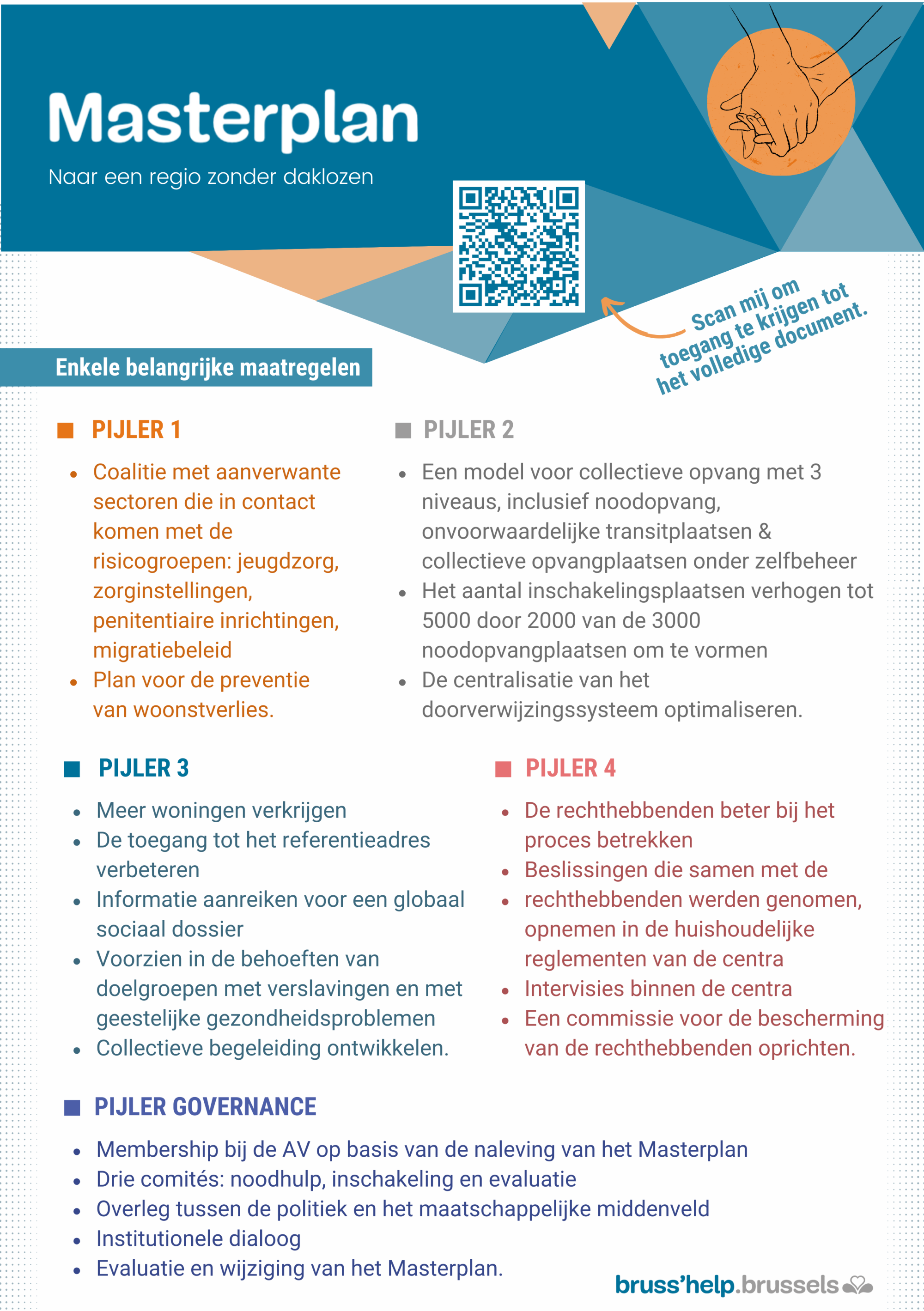 naar het artikel en het interview op Bruzz.beHet Masterplan EINDE VAN DE DAK- EN THUISLOOSHEID IN HET BHG De operationele strategie van Brussel om tegen 2030 te ontsnappen aan de noodlottigheid via preventie, begeleiding en huisvesting
